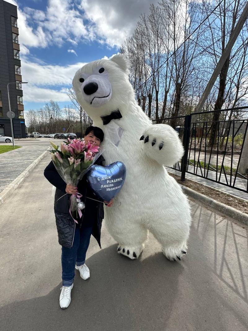 Заказать поздравление Белого Мишки Москва можно у нас ! Гигантский белый медведь 2,6 метра незабываемое поздравление на любой праздник! Ищете яркое и оригинальное поздравление для ребенка или взрослого? Наш ростовой костюм белого медведя высотой 2,6 метра вызовет бурю восторга и восхищения с первых минут! Такой гигантский белый мишка станет главным событием любого торжества в Москве и Московской области. Наши белые медведи приезжают на ваше мероприятие с веселым музыкальным сопровождением. Выбирайте стандартный репертуар или закажите любые свои песни гигантский мишка включит их на своей мощной колонке, создавая праздничную атмосферу. Белый медведь-танцор не только поздравит именинника, но и эффектно вручит подарок цветы, шарики или коробку с игрушкой. Он обязательно устроит зажигательные танцы с виновником торжества и сделает яркие фотографии с вами и гостями! Большой белый мишка приедет и поздравит в любое место: квартиру, кафе, на улицу, детскую площадку, в парк, ресторан, лофт, на дачу или загородный дом, главное- высота потолков и сухая погода. Подарите незабываемое шоу и яркое поздравление это будет зрелищно и трогательно!